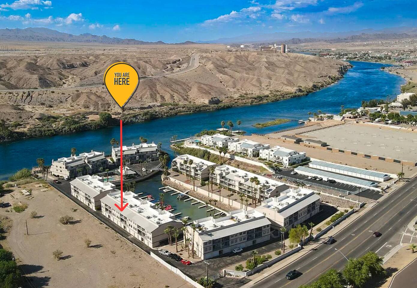 Welcome to our River Escape - a conveniently located, dog friendly condo in Bullhead City, AZ. With direct river access via our private community boat launch & marina, bring your boats/jet skis & enjoy your stay. Lounge by the heated pool or relax in the spa! Snowbirds are welcomed!! 🎰 Laughlin, NV, is a short 10 min drive. 🚤 Lake Mohave is a short 15 min drive. ☕️ Starbucks - across the street! 🛒 Groceries, 🛝 parks, 🎥🎳entertainment - all close by! TPT: 21616545 | STR: 540364