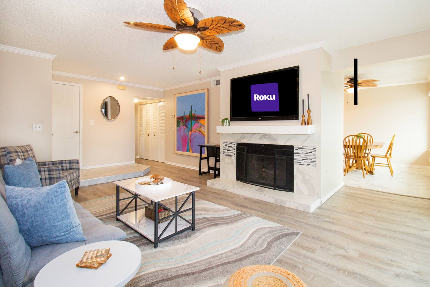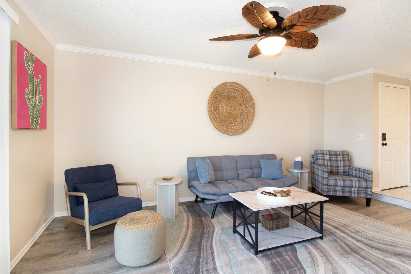 About the condo: 🛌 Sleeps 5: - Master bedroom: 1 queen bed - Guest bedroom: 1 full bed - Living room: 1 futon *Pack n Play available & located in master bedroom closet* 🐕 Dog Friendly: - 2 small dogs max - no cats 🚫🐈 - Non-refundable $100 pet fee - per dog / per stay 📺 Living room: - cable TV, Roku streaming device & wifi 🍳 Fully stocked kitchen: - All electric appliances - with complimentary oil & cooking spices. - Keurig Duo - Kcup & full pot - with complimentary coffee, creamers, sugar, tea, and honey. 🍽️ Dining room: - Dining table with seating for 4 - Kitchen counter seating for 2 *High chair available & stored in master bedroom closet* 🏊🏻 Community Pool & Spa: - Heated Pool - Always available - Quite hours are 10 pm to 6 am 🤫 - No lifeguard on duty - Pool towels provided by host *This unit is located on the top floor of the building, with 3 flights of stairs to reach the unit. There is no elevator. Please be mindful of small children, elderly, or those with mobility issues, as this property may not be suitable for everyone.