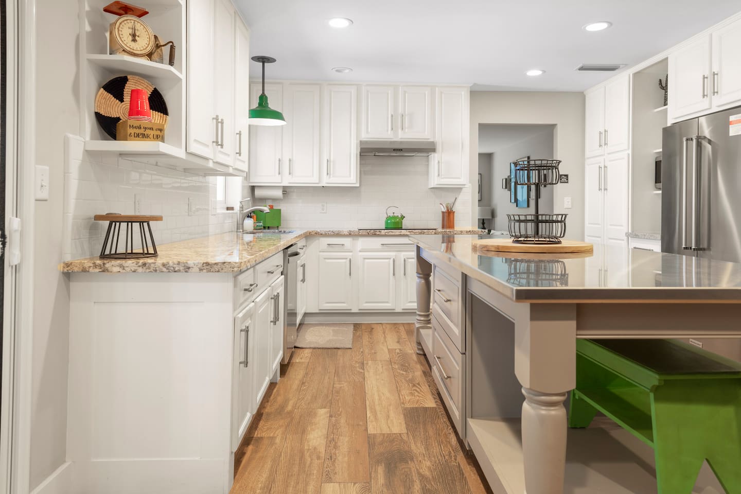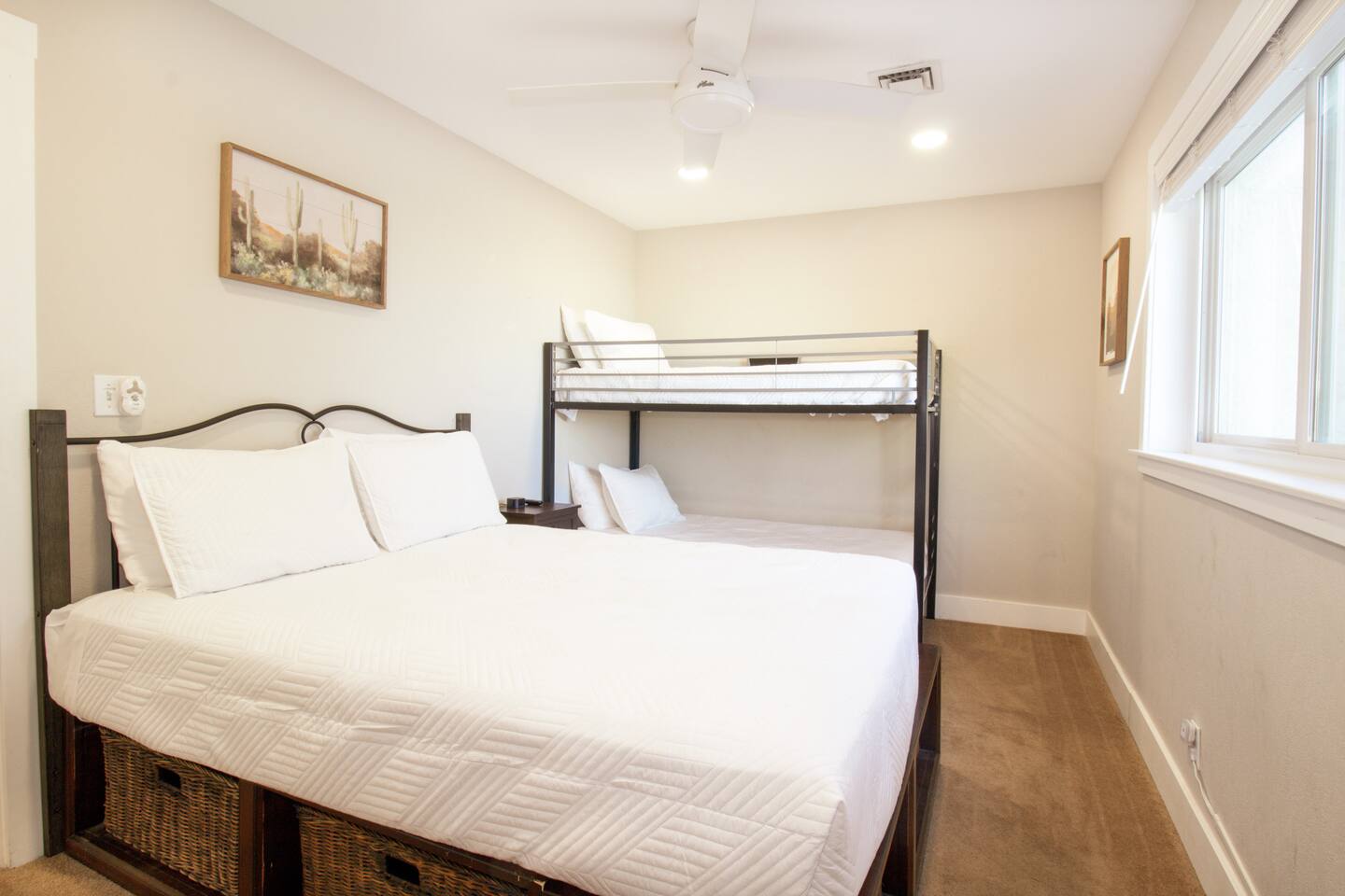 ABOUT THE HOME: - Large shaded patio area w/ propane Blackstone griddle - Large shaded back patio area w/ outdoor movies & games - Large fully stocked kitchen - Large dining area w/ a table & a banquette - Living room w/ smart TV - Indoor laundry area SLEEPS 15: Master bedroom: King bed, sofa bed, 1 rollaway twin bed (sleeps 5) Bedroom 2: Twin-over-twin bunk bed, queen bed (sleeps 3) Bedroom 3: Queen bed (sleeps 2) Bedroom 4: Queen bed, twin bed (sleeps 3) Living room: sofa bed (sleeps 2) POOL: -Pool is NOT heated. -Please do not remove the pool vacuum (it is a very expensive item & helps to keep the pool clean during your stay). -Please do not touch the pool filter equipment. -Pool service is every Monday & Friday. Do not interfere with the pool technician. SPA: - The spa can be heated for an additional $100 per day. - The heating schedule each day is 4pm-10pm. DOG FRIENDLY: - 2 dogs MAX. - $150 pet fee per dog. - No cats allowed— severe allergy. - Front yard is fully fenced. Back yard / back patio is not fully fenced.