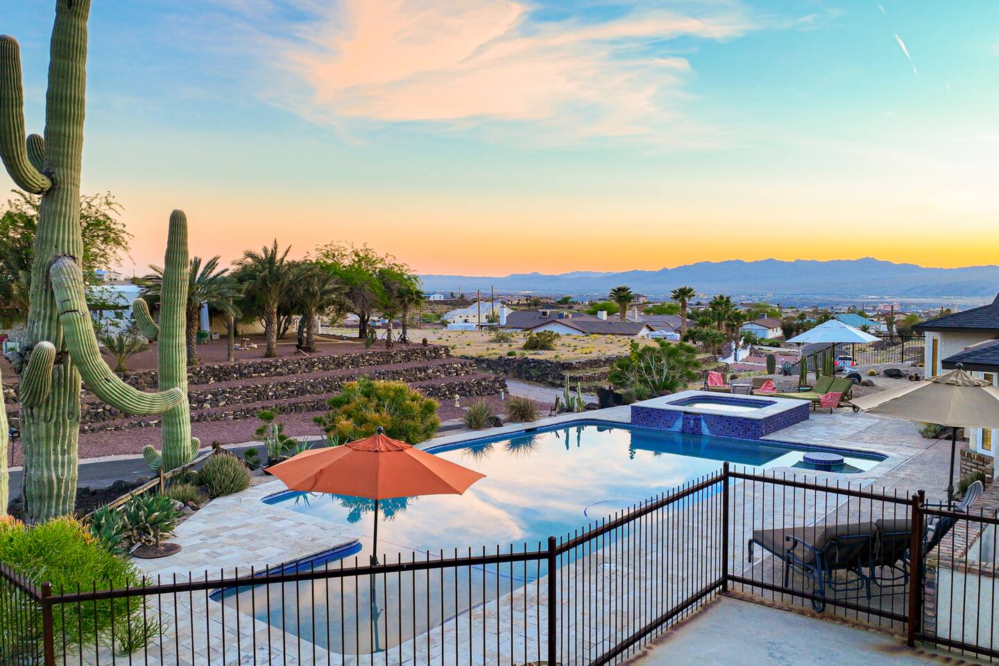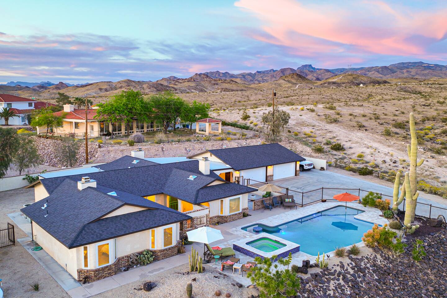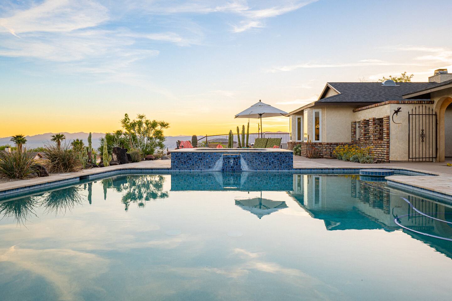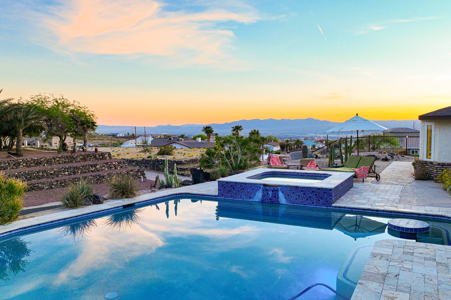 Welcome to “Endless Summer,” a vacation home built for large families! A true desert oasis with a private pool, bubbling spa, BBQ, shaded patios & dog-friendly, just minutes from Lake Mohave and Laughlin! Sleeps 15 Pool Spa (heat optional see rules) Sun loungers Full kitchen + outdoor BBQ Smart TVs & outdoor theatre Bring the boat, the kids and the pups — with only a short drive to the launch ramp or to Laughlin casinos, book now & start your Endless Summer today! TPT 21613093 | STR000429