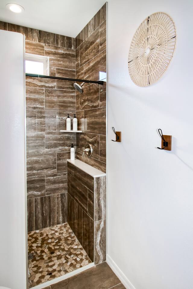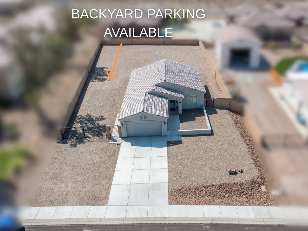 Parking is available for all your vehicles, boats, trailers, and RV’s. You can park on the driveway, as well as on the rocks next to the driveway, & in the backyard behind the large gates.