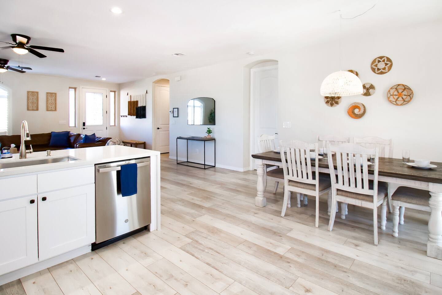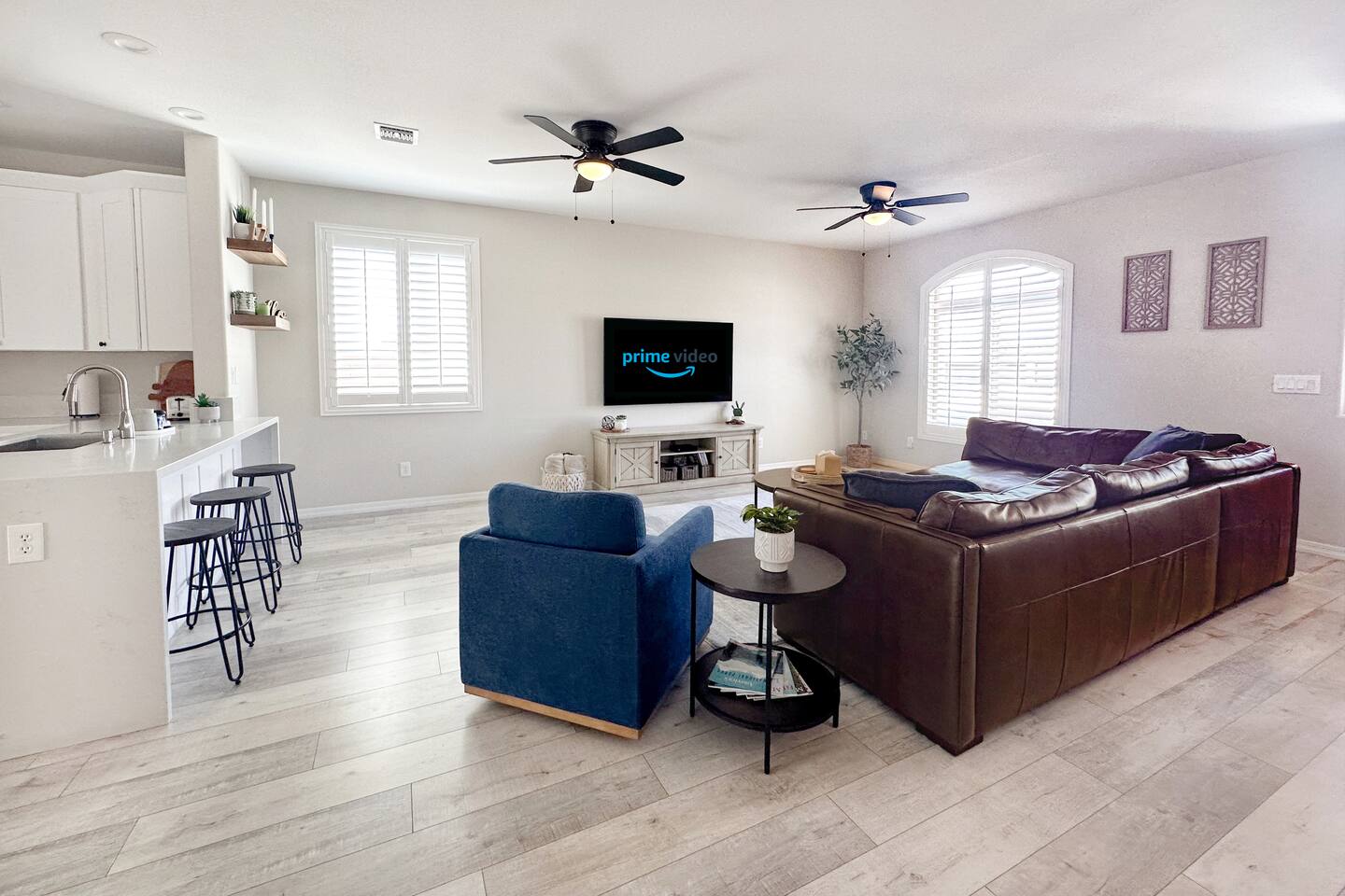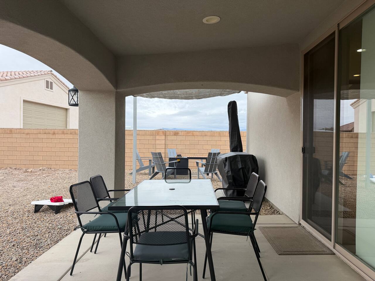 This newer home is perfect for all your Laughlin & Lake Mohave getaway trips. Best of all, there is plenty of gated parking for all your summer water toys or your winter OHVs. FULLY STOCKED KITCHEN: - All electric appliances, pots/pans, baking sheets, baking dishes, electric kettle, blender, electric hand mixer, Crockpot, Instapot, air-fryer, cups/plates/silverware, and Keurig coffee maker (full pot & k-cup) - Complimentary ground coffee, k-cups (regular & decaf), sugar/sweetener, creamer, tea, honey, salt & pepper, various spices, olive oil & cooking spray. LIVING ROOM: - Large sectional, smart TV equipped with Cable television & free streaming apps, card games, board games, dominoes, coloring books/crayons/etc. MASTER BEDROOM: - Queen sized bed, smart TV equipped Cable television & free streaming apps, desk, alarm clock & USB/USB-C chargers - Walk-in closet - En-suite bathroom with walk-in shower GUEST BEDROOM 1 & 2: - Queen sized beds, smart TV’s with free streaming apps, alarm clocks & USB/USB-C chargers KID FRIENDLY: -Pack'n Play located in master bedroom closet, small step stool located under hall bathroom sink, plastic plates/cups/bowls available in kitchen - Coloring books, crayons/color pencils & card games in available living room. ** High chair is available upon request** FULLY EQUIPPED LAUNDRY ROOM: - Complimentary laundry detergent, fabric softener, bleach, dryer sheets, and clothes drying rack - Iron & ironing board located in master bedroom closet COVERED PATIO: - Patio dining table & chairs BACKYARD: - Propane Firepit & seating (must turn propane tank on prior to use)